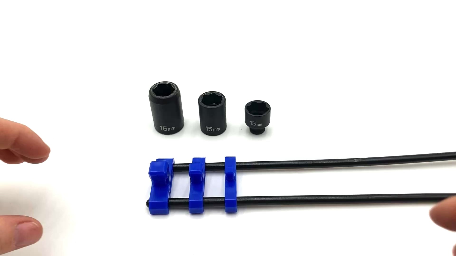 Includes two 12 inch Alien rods (Polypropylene), 15 attachment pieces holding 1 sockets each. Holding 15 Sockets total.  (Sockets not included)